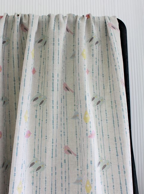 Natural Vorhangstoff, Perlen mit Vögeln Muster.