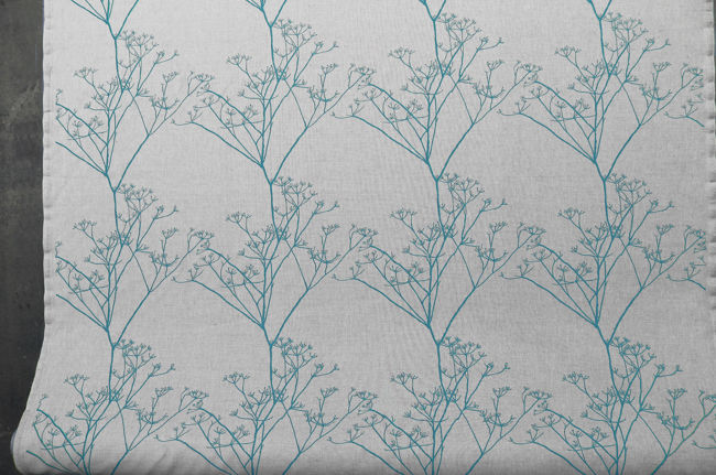 Naturstoff mit blauem Druck