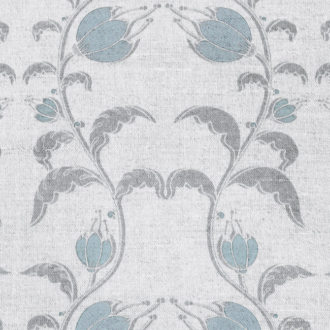 Leinen-Baumwollstoff, Blau / Grau Muster