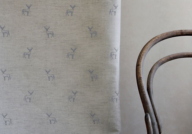 Vorhangstoff mit grauem Hirschmuster