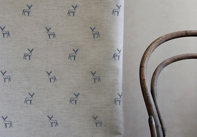 Vorhangstoff mit blauem Hirschmuster