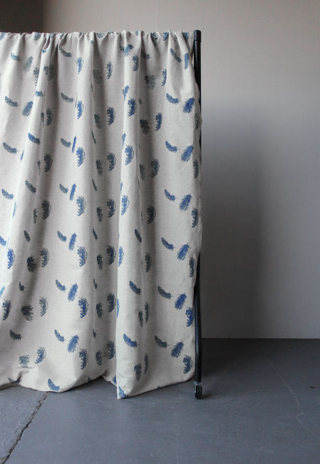 Feathers Night Blue - Blau Leinen-Baumwoll stoff