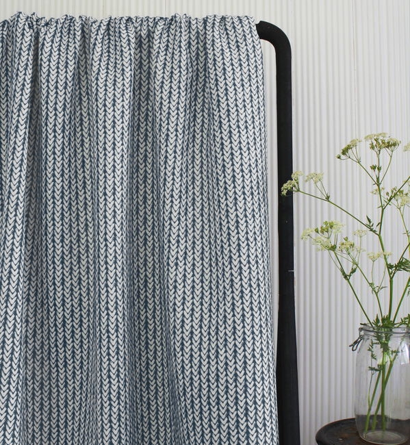 Weißer Leinenstoff, Dunkelblaues Muster