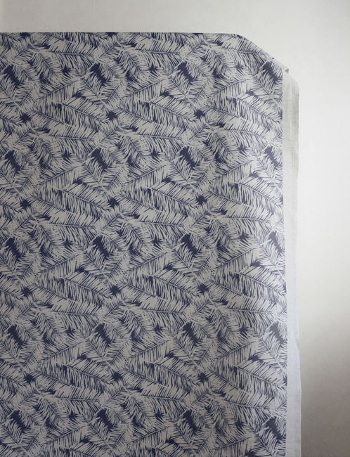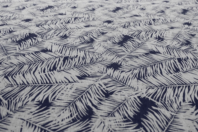 Gardinenstoff, Dunkelblaues botanisches Muster