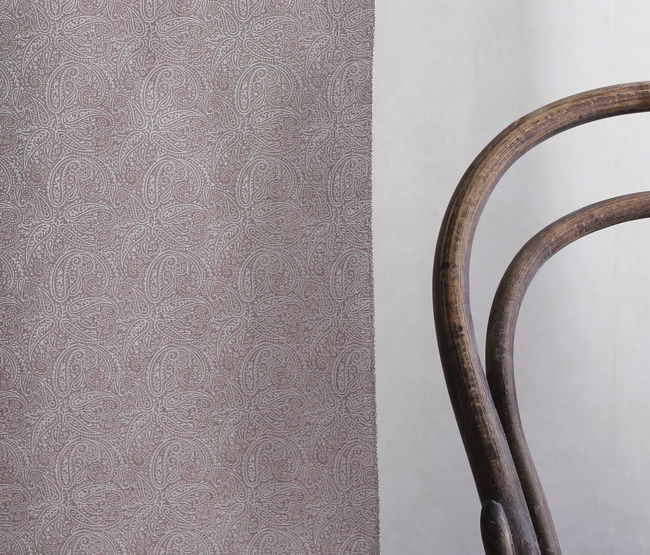 Weißer Stoff aus 100% Leinen mit rosa Paisley Muster