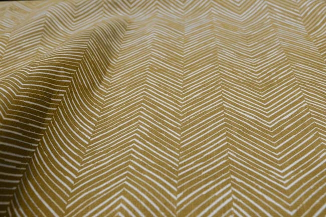 Gardinenstoff aus 100% Leinen mit Senfgelb geometrisches Muster.