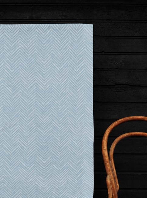 Gardinenstoff aus 100% Leinen mit Blaues geometrisches Muster.